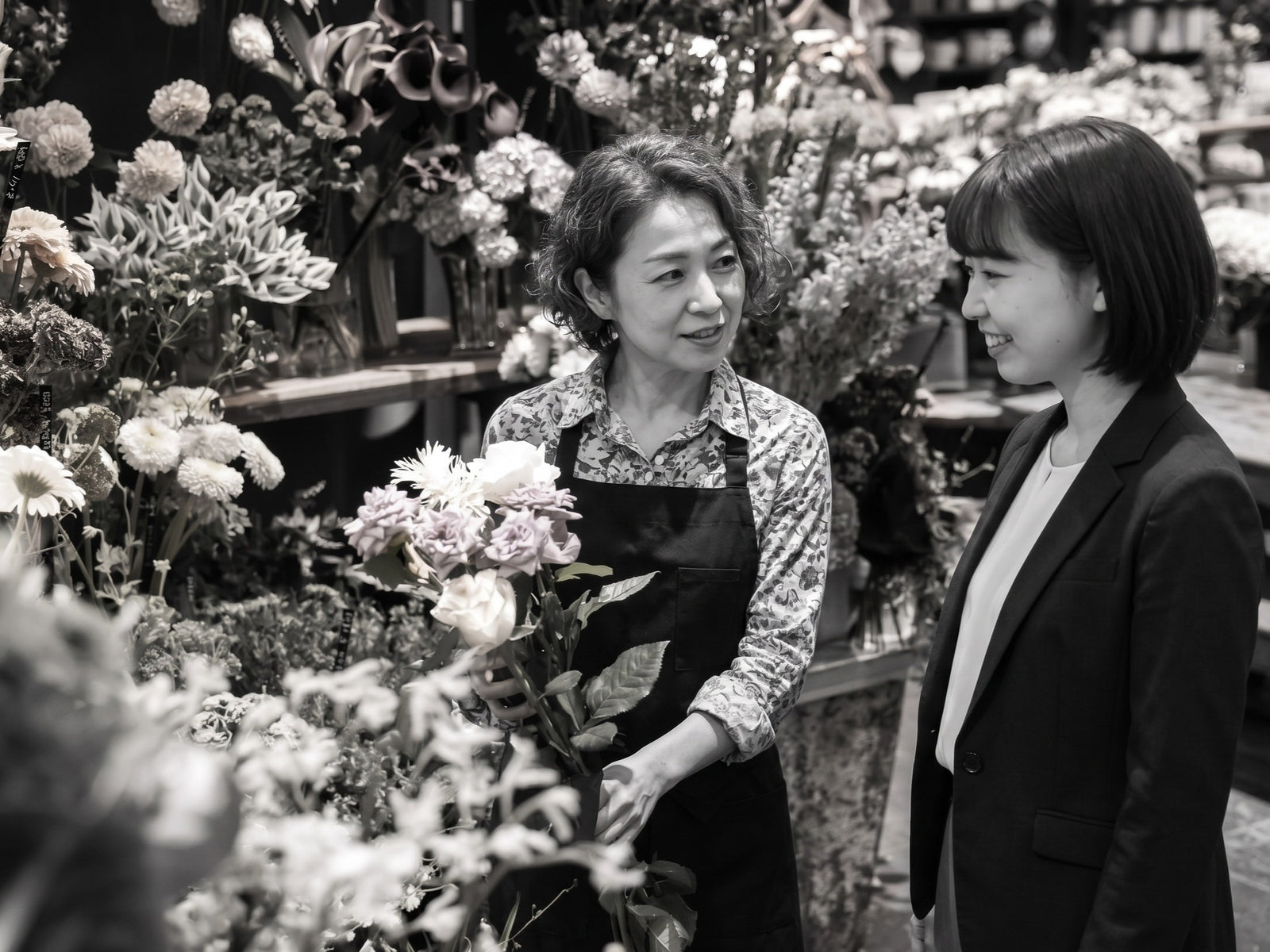 創業者・午之助から継承された哲学は、「常に最高品質の花を提供すること」。これは、一流の生産農家や花卉市場との強固な関係から成り立っています。熟練したデザイナー・スタッフがこの美しい花々を通じて、お客様の日常に特別な一瞬をもたらします。